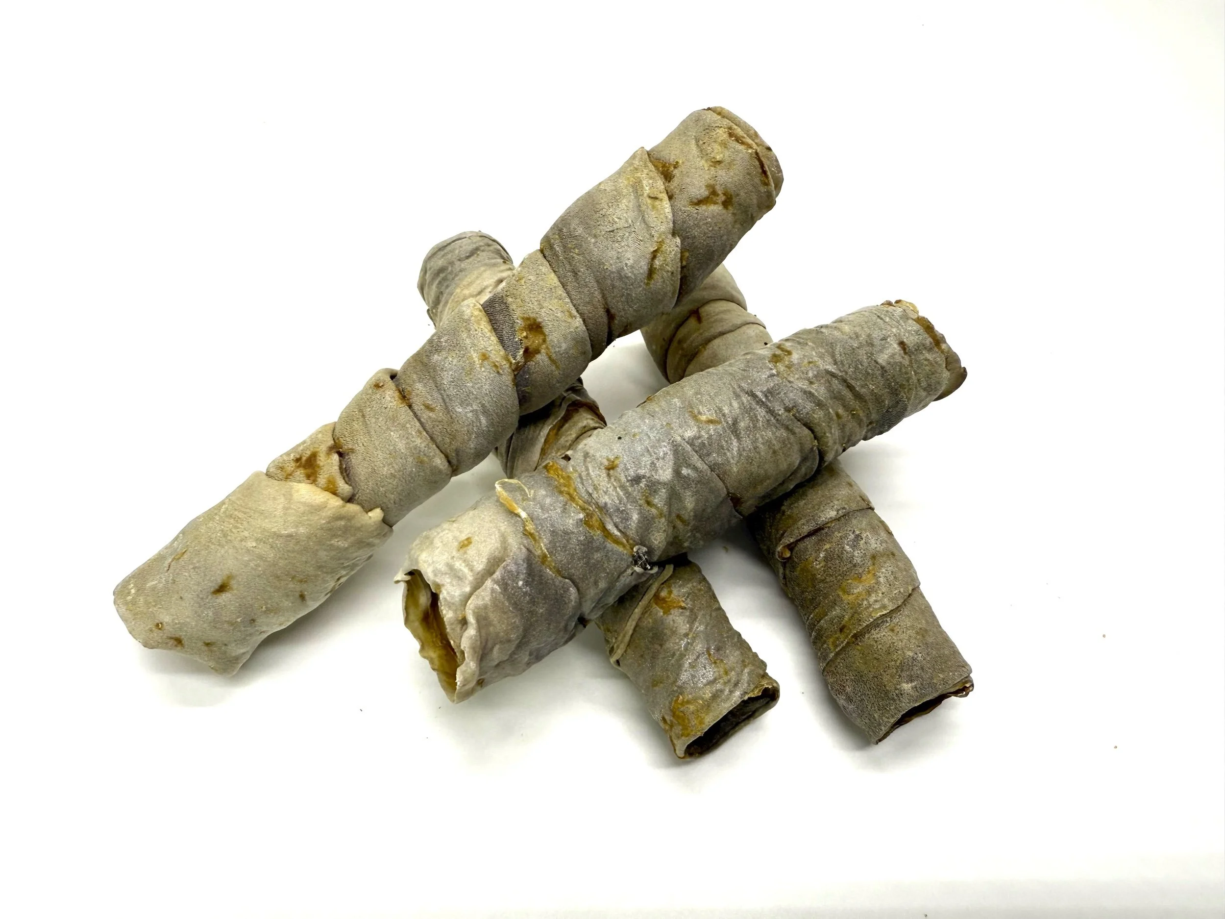 Made from 100% air-dried shark skin, these rolls are naturally high in protein and low in fat, making them a healthy and satisfying option for dogs who love to chew. The tough, textured surface also helps support dental health, assisting in reducing plaque and tartar while your dog happily gnaws away.